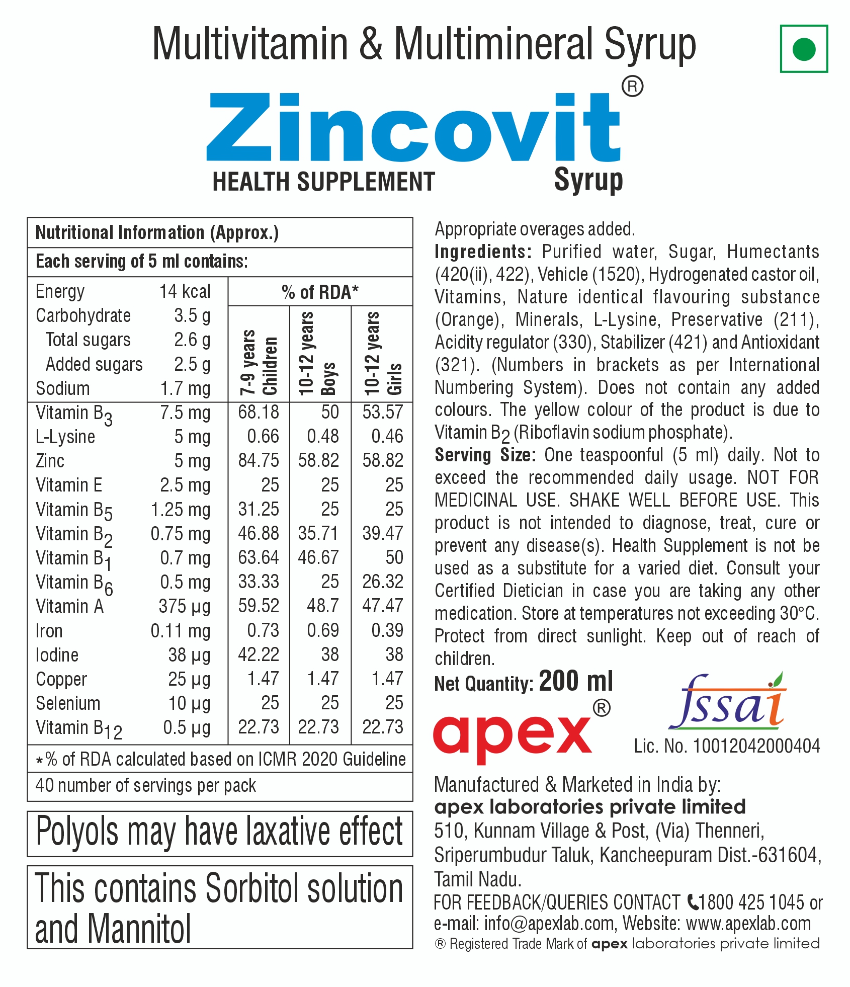 Zincovit Syrup